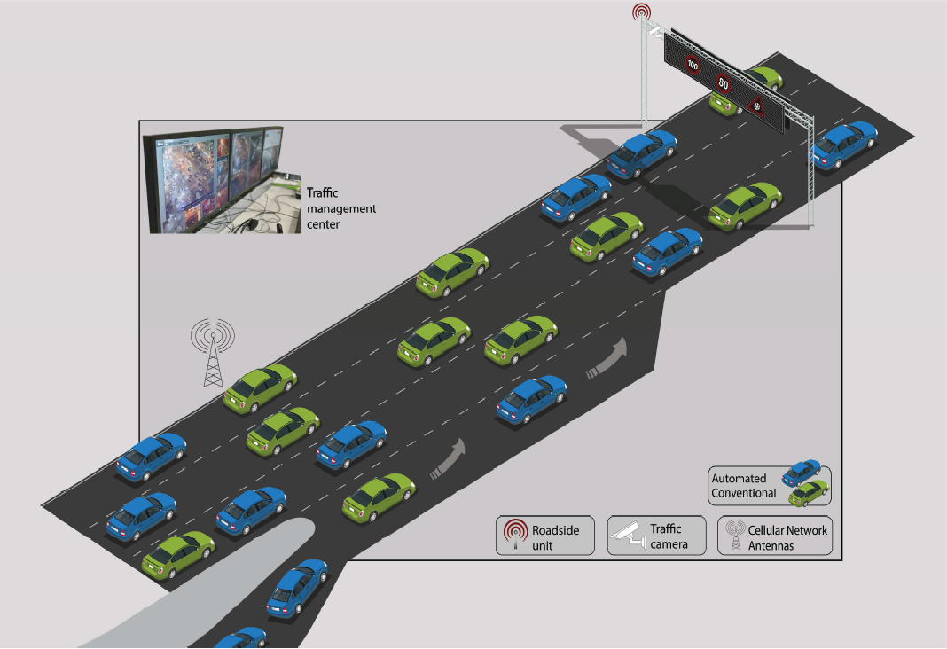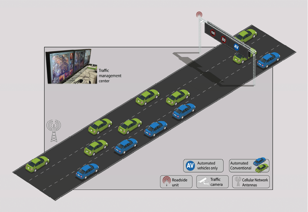 The assignment of a dedicated lane to automated traffic is expected to reduce the safety concerns around the penetration of the automated vehicles to conventional traffic. One of the targets of this scenario is to understand how to balance mixed traffic in order to maintain the traffic throughput at least at the same level, as in case of today’s traffic consisted of conventional vehicles only. During this process, parameters such as the penetration rate of automated vehicles and the prevailing traffic conditions will be considered. In addition, speed limits per lane or road segment will be dynamically adapted taking into account also potential adverse weather conditions. The study of this scenario, in simulation and in real conditions, will give us insights on how to manage in an efficient manner mixed traffic flows on normal highway segments. It will provide proper indicators for activation and deactivation of lanes assigned to automated vehicles, customized speed and lane recommendations for all vehicles on this segment based on prevailing traffic conditions and also visual and electronic ways for informing all vehicles and drivers involved.