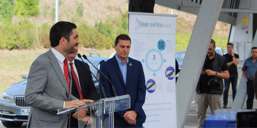 The testing days in the Spanish Inframix site had a remarkable resound in the local, regional and national press. Lots of journalists took part as users in the testing rounds, which were also shown on tv news thoughout Spain. We also welcomed the Catalonian minister of Digital Policies and Public Administration Jordi Puignero on the second day of our test. He participated in the test of the dedicated lane to autonomous vehicles.